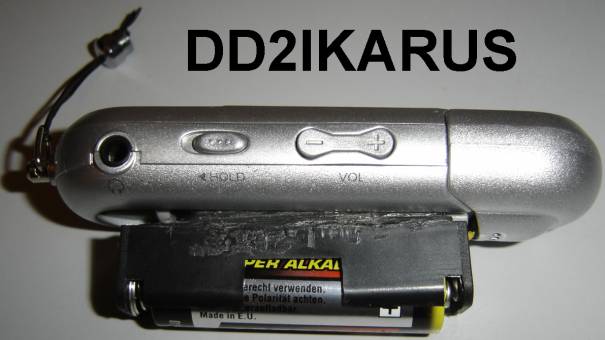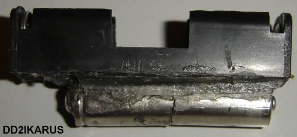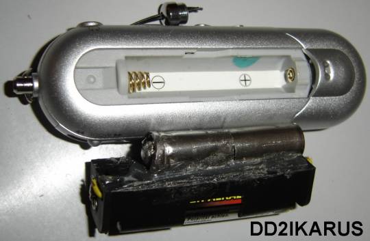mit Schmelzkleber eine normale Micro Batterie angeklebt ist. Bei dieser